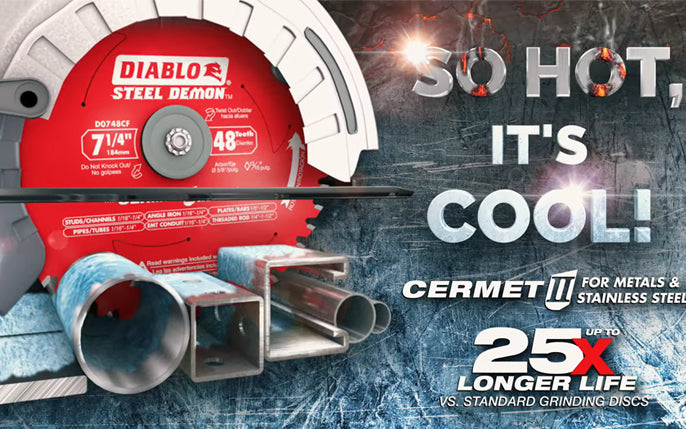 Diablo’s Steel Demon Cermet II saw blades are redefining metal cutting. The ability to cut through both metals and stainless steels eliminates the need for individually dedicated saw blades, offering a one-blade solution for the ultimate metal cutting performance and an unmatched value.
