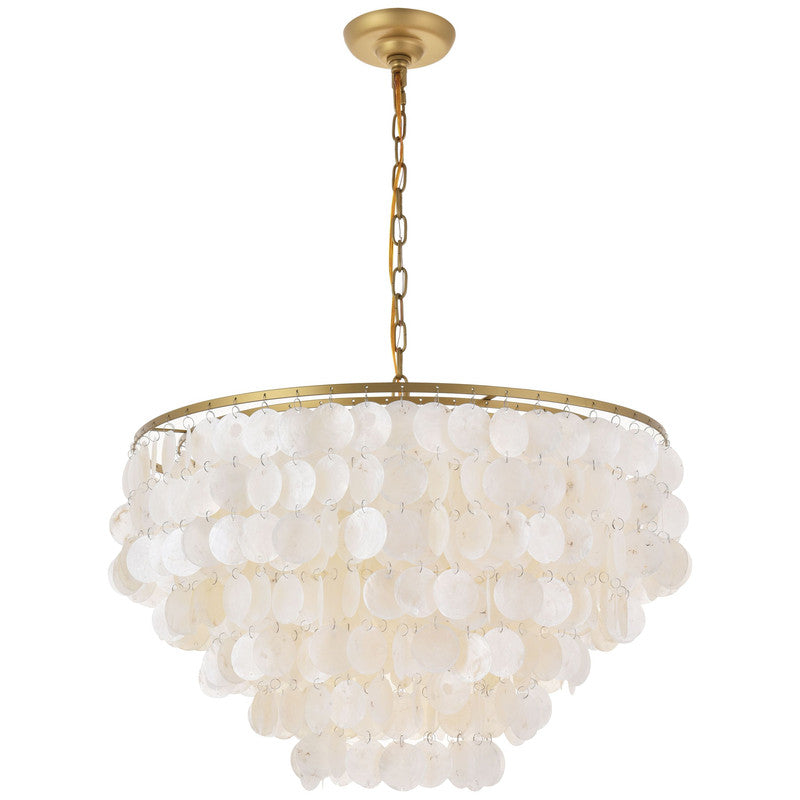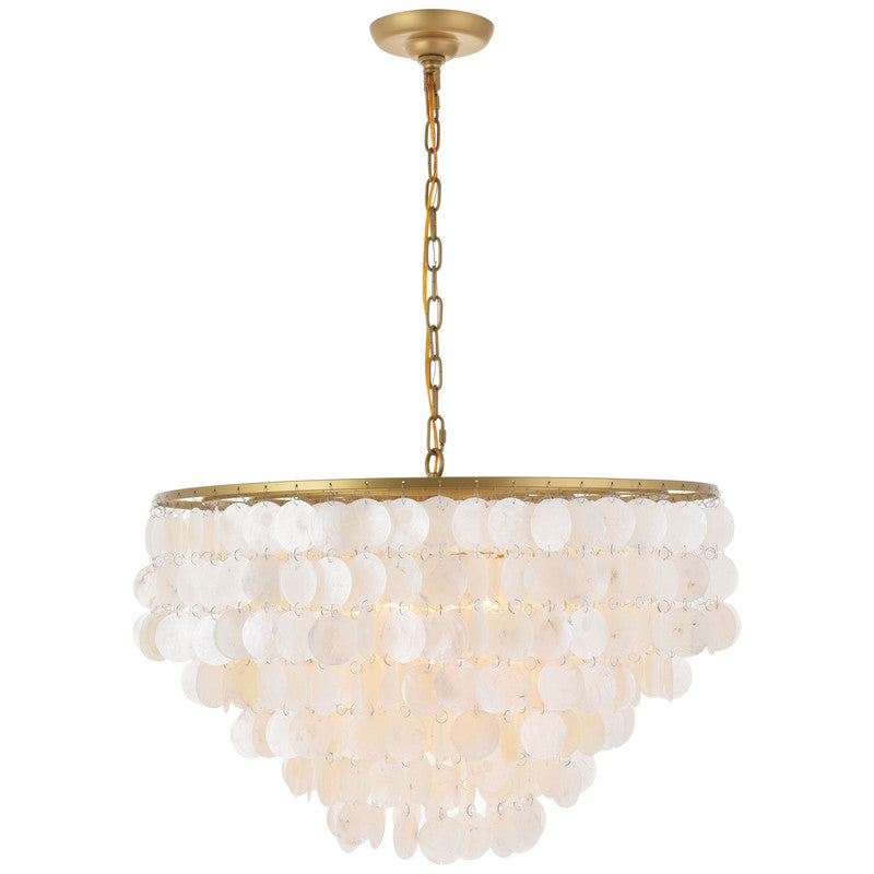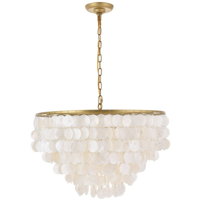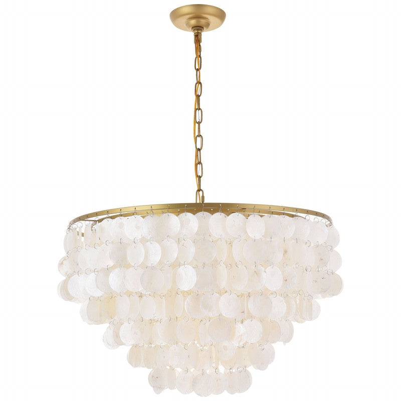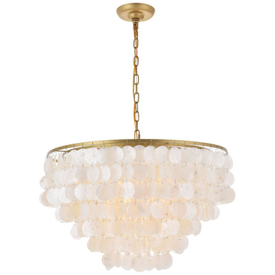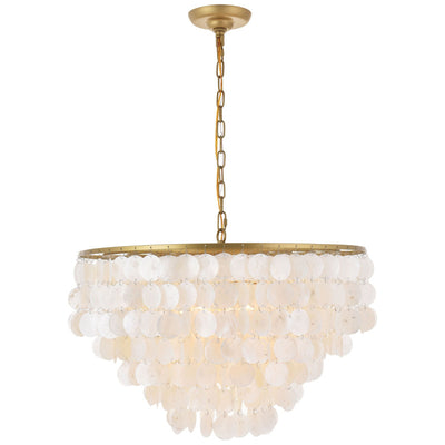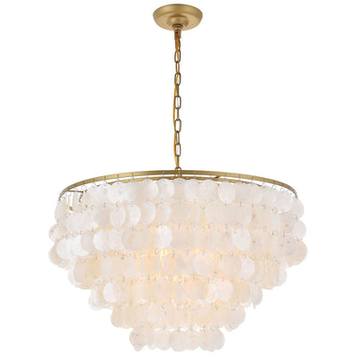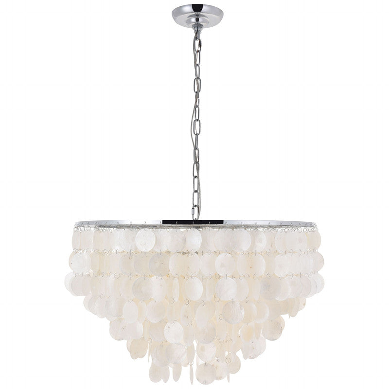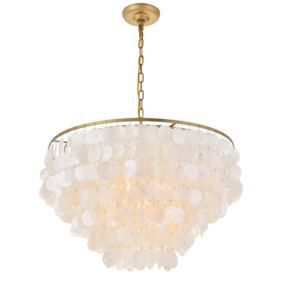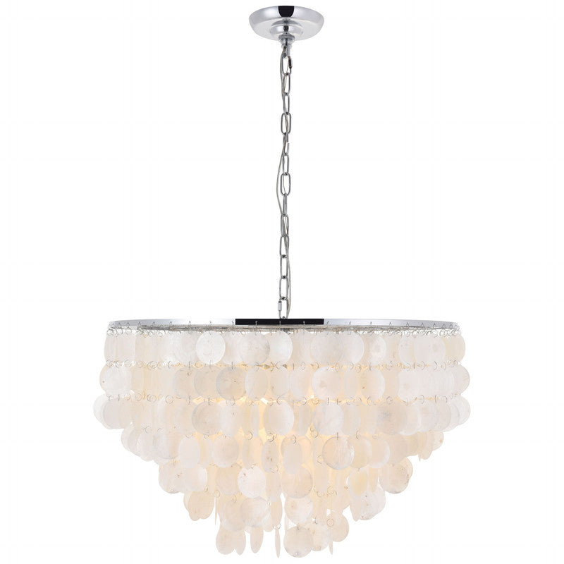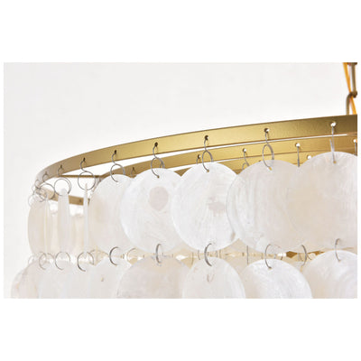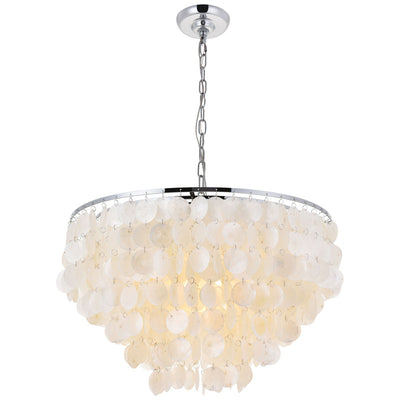 - Circular off-white shells falls down in tiers, veiling the lights withinCircular off-white shells falls down in tiers, veiling the lights within