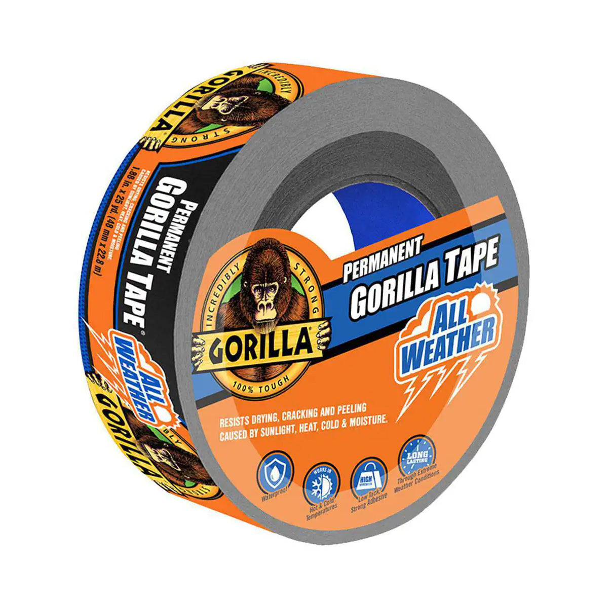 Gorilla Tape is 3 times stronger for a hold that lasts. Made with double-thick adhesive, strong reinforced backing, and a tough all-weather shell, this duct tape is great for projects and repairs both indoors and out. Gorilla tape sticks to smooth, rough and uneven surfaces, including wood, stone, stucco, brick, metal and vinyl. Gorilla Tape, for the Toughest Jobs on Planet Earth.