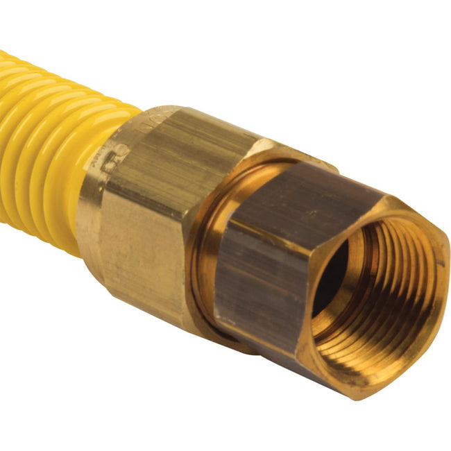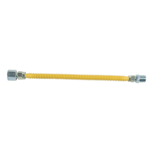 Threads directly into female fittings. Common for water heater hookups, gas connectors, and appliance lines.
