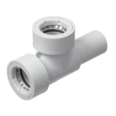 - Connects two 1" PVC-Lock fittings with a 1" spigot outlet