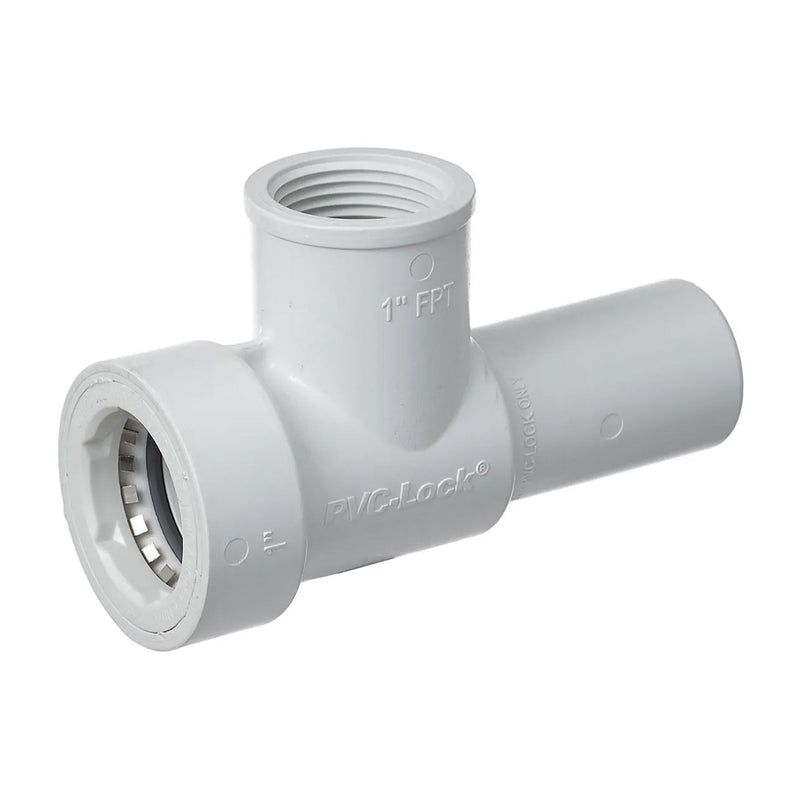 Hydro-Rain PVCL-477-010 - 08688 - 1" PVC-Lock by 1" Female IPT by 1" Spigot Manifold Tee