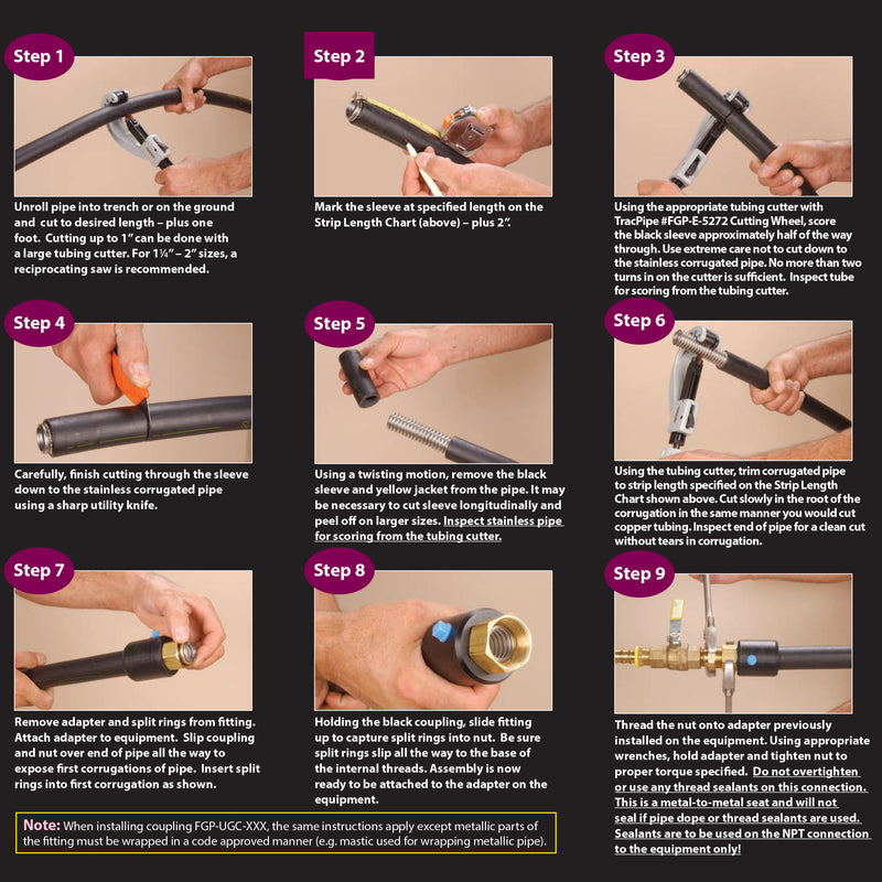 - Connection of TracPipe PS-II flexible gas piping to NPT fittings