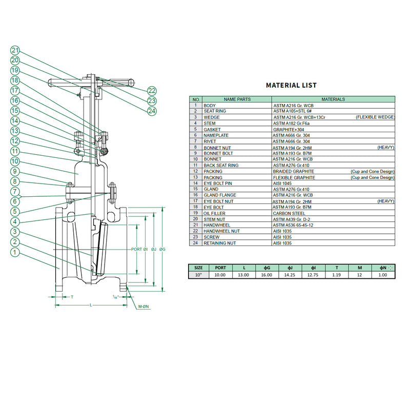 - Bonnet: ASTM A216 WCB