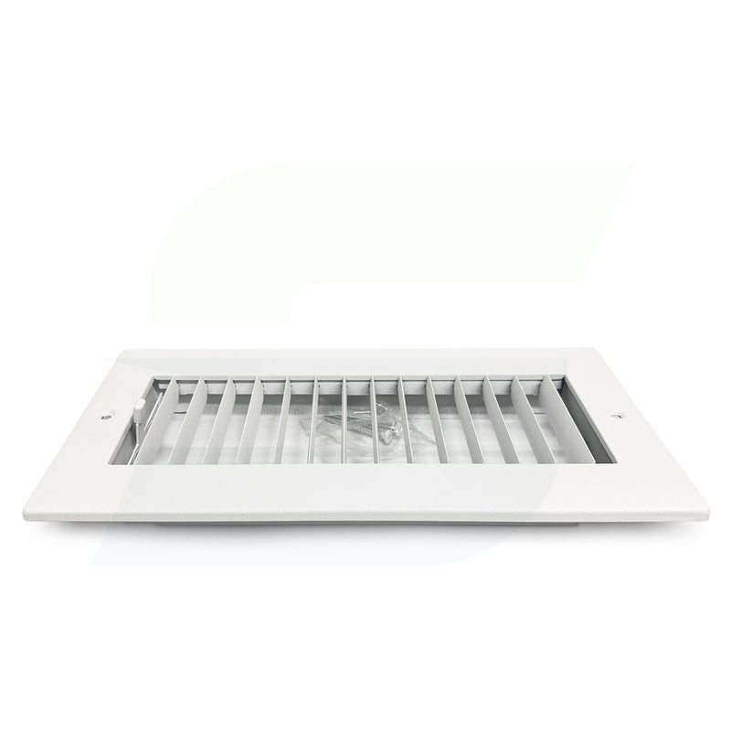 - Adjustable aluminum airfoil blades oriented for 1 or 2 way airflow pattern