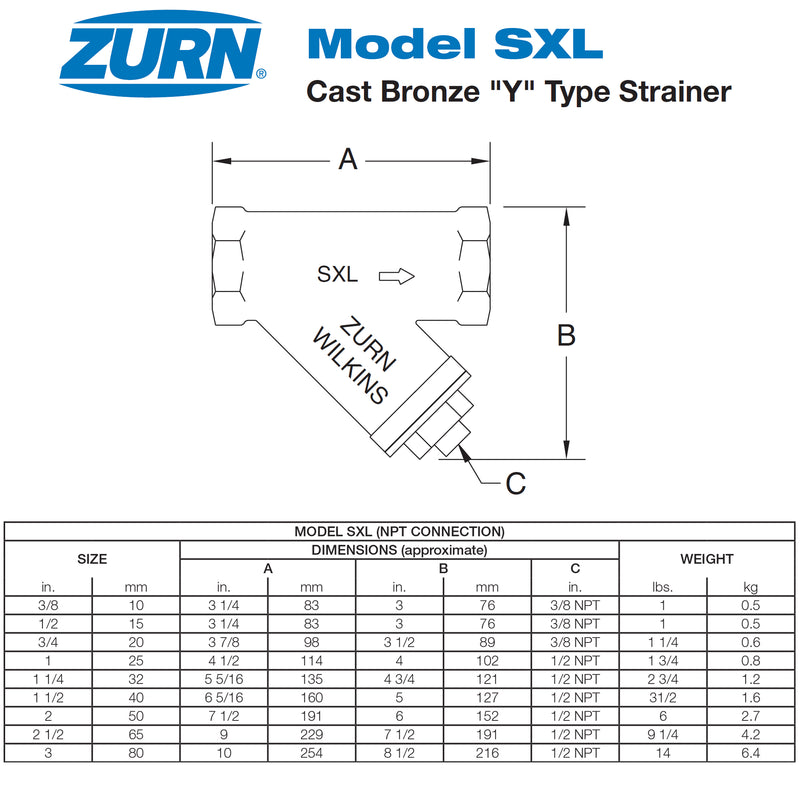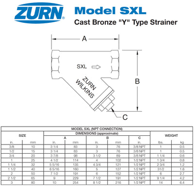Zurn Wilkins 12-SXL - SXL Lead Free Cast Bronze Wye Strainer - Threaded - 1/2"