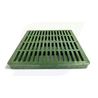 The NDS 1212 12" square catch basin grate is a durable, high-performance solution designed to keep large debris out of your drainage system while maintaining optimal flow. Made from structural foam polyolefin, this green grate is built to withstand residential and light commercial use and integrates seamlessly with 12" catch basins to manage surface water runoff effectively. Its vibrant green finish blends well with turf and landscaped areas.