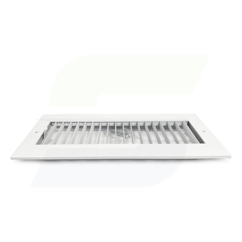 The Shoemaker 950 Adjustable Aluminum Airfoil Blade Register features aluminum airfoil blades that can be oriented for one- or two-way airflow, with nylon bushings to prevent rattle. It has a steel multi-shutter damper, is built for ceiling or sidewall use, and is coated in a powder-finish Soft White that resists rust, peeling, and wear.
