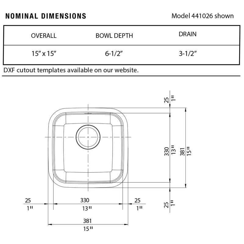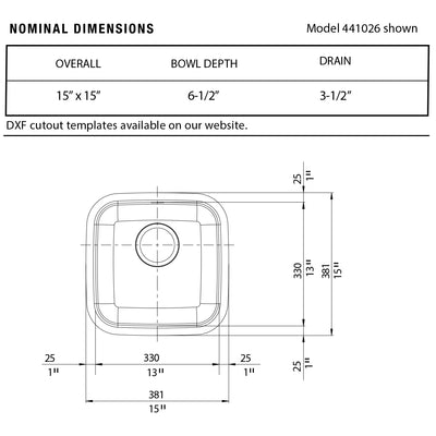 - Sink Bowl Dimensions: