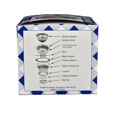 Dearborn 15 Locking Cup Sink Basket Strainer features a stainless steel body and basket and is ideal for use on deep cast iron sinks.