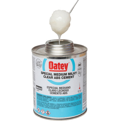 Oatey Special Medium Milky Clear ABS Cement is recommended for all non-pressure applications. It is formulated for fast curing and to eliminate the clean-up problems associated with black ABS cements. It is easy to apply with included in-lid dauber. This milky-clear, fast set cement can be used to solvent weld all schedules and classes of ABS pipe and fittings up to 6 in. diameter with interference fit. Oatey products have earned the trust of plumbing professionals for over 100 years.