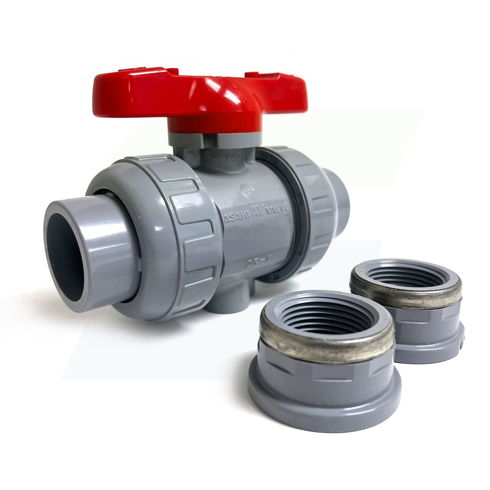 - Two sets of end connectors (socket and threaded) included with all PVC and CPVC valves in sizes ½" 2"