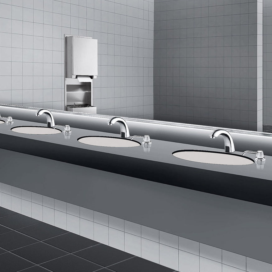 - Unit may be mounted in unused faucet hole or through special hole requisitioned when lavatory is ordered from manufacturer (specify punching location).