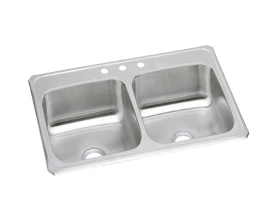20 Gauge Stainless Steel 33" x 21.25" x 6.875" Double Bowl Drop-in Kitchen Sink