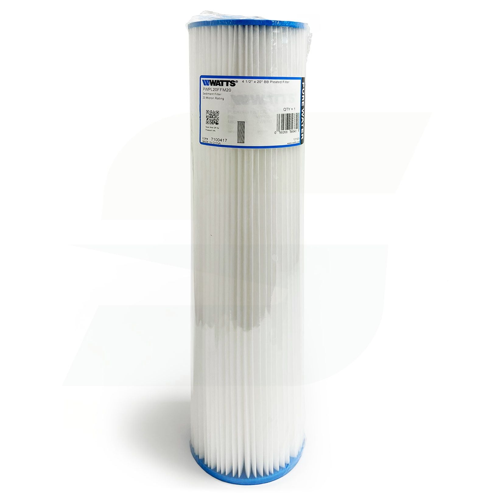 Watts 7100417 - 20" Full Flow Pleated Sediment Filter Cartridge, 20 Micron