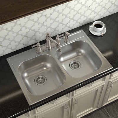 The 2000 Series delivers design and functionality at a value. A variety of configurations and mounting options in quality 20-Gauge stainless steel give you choices that fit almost any countertop material. Exceptional sound deadening and a wear-resistant uniform brushed finish. This sink is backed by MOEN's limited lifetime warranty, assuring the style and functionality last.