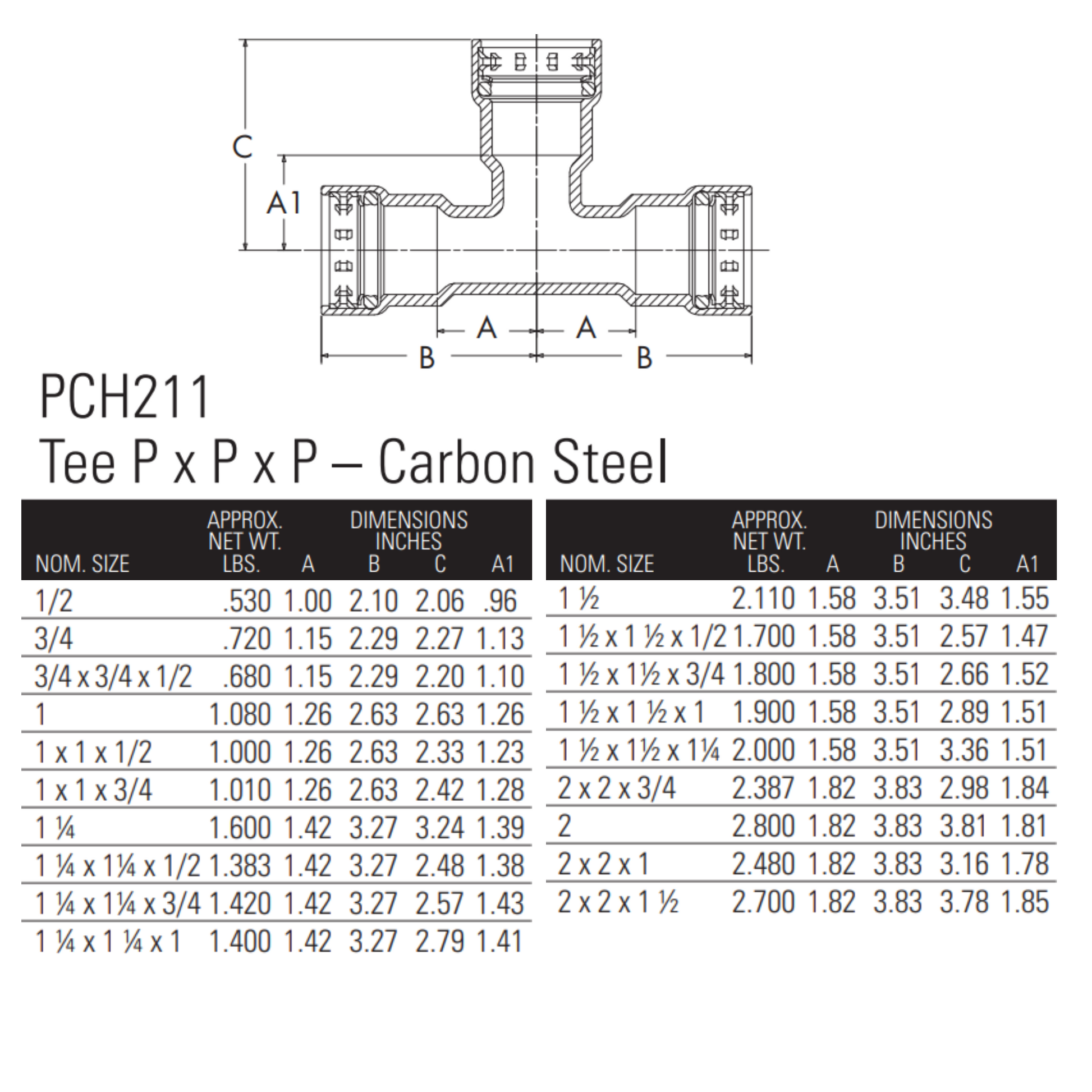 NIBCO 2100200HPC - 1-1/4" x 1-1/4" x 1" PCH211 BenchPressG Tee - Carbon Steel