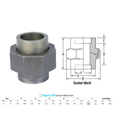 Anvil 2126 - 1/2" Class 3000 Forged Socket Weld Union