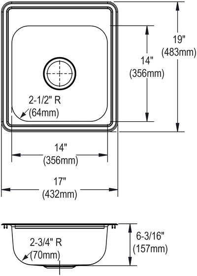 22 Gauge Stainless Steel 17" x 19" x 6.1875" Single Bowl Drop-in Bar/Prep Sink
