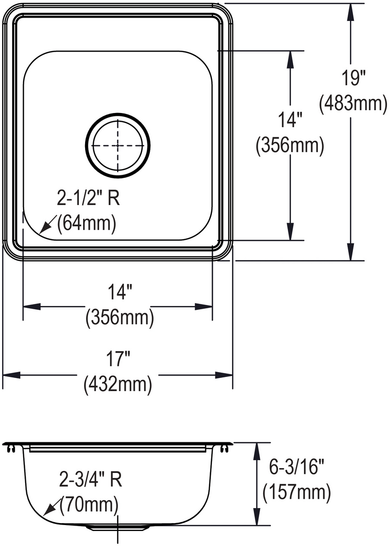 - DRAIN OPENING: Sink drain opening measures 3-1/2".