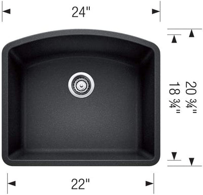 24" Diamond Single Bowl Undermount Kitchen Sink - Anthracite