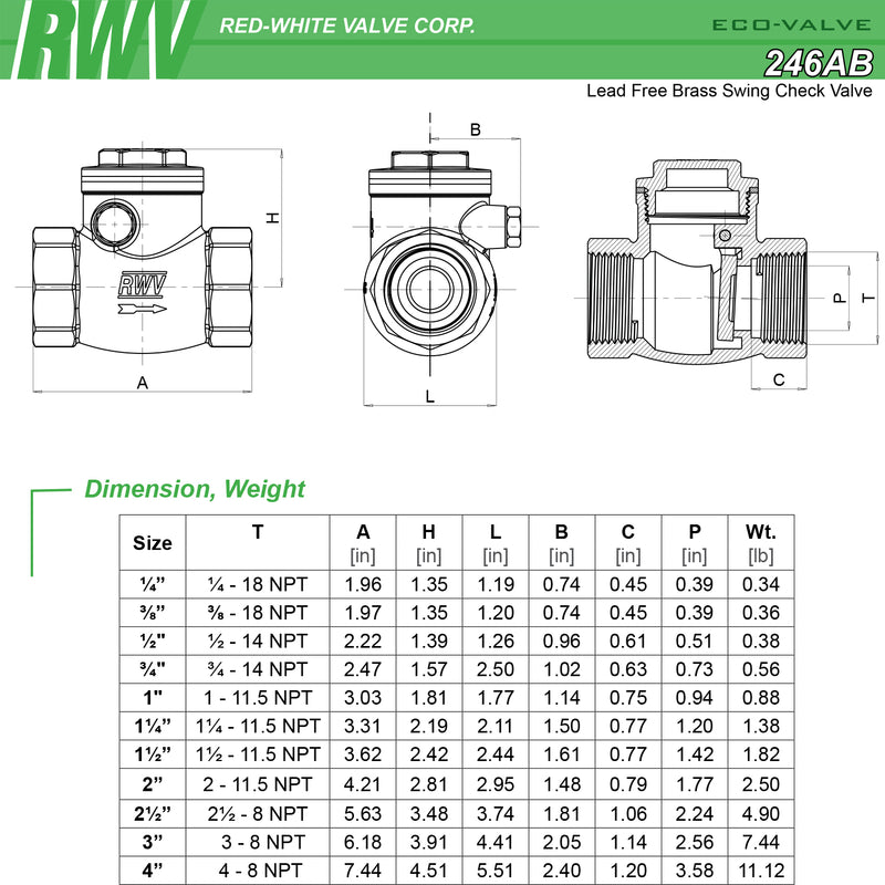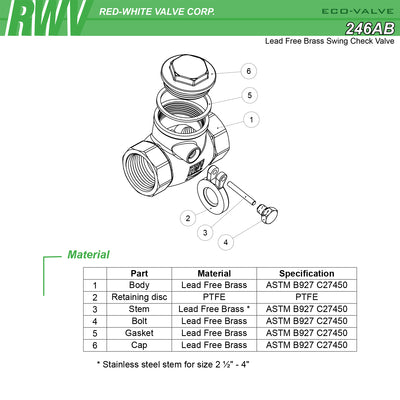 Red-White Valve 246AB - Lead Free Brass Swing Check Valve - 200 WOG - Threaded