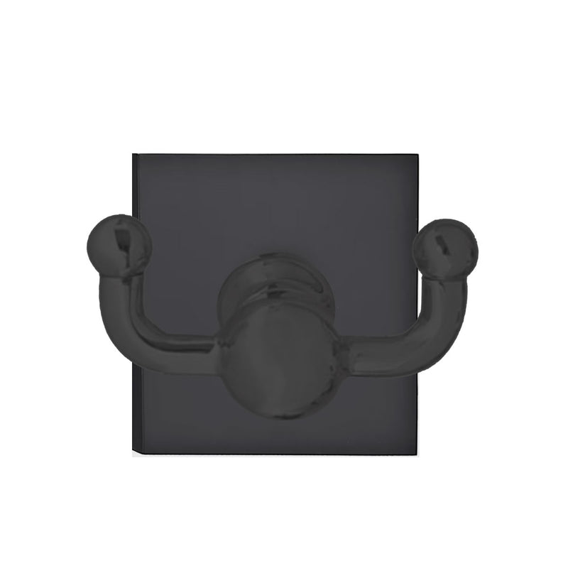 2609SQUUS19 - Traditional Brass Double Hook with Square Rosette in Flat Black