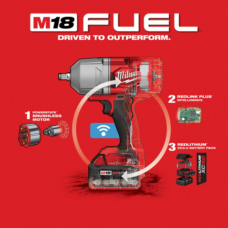 Milwaukee's M18 FUEL w/ ONE-KEY High Torque 1/2" Impact Wrench with Friction Ring provides the Most Powerful, Most Compact, and the Most Repeatable Impact Wrench in the industry! The POWERSTATE Brushless motor delivers up to 1,000ft-lbs of fastening torque and 1,400ft-lbs of nut-busting torque, providing our users a cordless solution that will eliminate the need for corded Impact Wrenches. The industry’s most compact cordless High Torque Impact wrench at 8.39" length allows for more access in tight spaces. Our M18 REDLITHIUM XC5.0 Resistant Battery Packs provide increased protection against oils, greases, and solvents. Compatible with our ONE-KEY, this is the industry’s first High Torque Impact Wrench that wirelessly connects to a smartphone to Customize, Track and Manage a tool’s performance and location. Tool Customization allows our users to connect to the tool and access predetermined set-ups for specific fasteners and materials. Also to have complete control over output speed and power for the specific application at hand. Users now have a tool that delivers the most repeatable torque output in the industry. Our solution will get users close to their targeted torque value, reducing the likelihood of significant under or over-torque. Users will experience less rework, less damage, and increased productivity that will get them closer to their torque target and finish with a calibrated torque device to reach their targeted torque value.