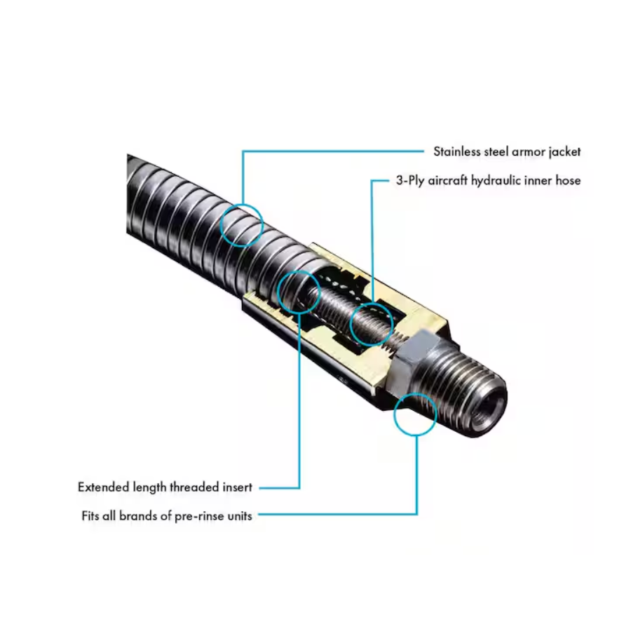 - Stainless Steel Armor Jacket - For longer service life, relieves tension and abrasion on inner hose. 3-Ply "Aircraft" Hydraulic Hose - Lasts three time longer