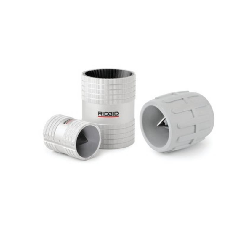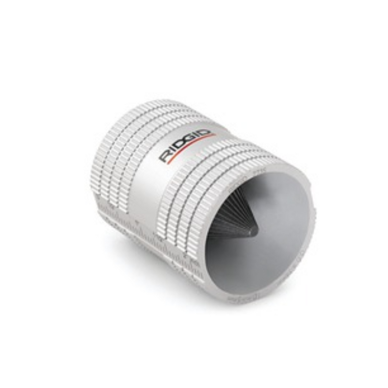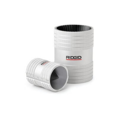 Ridgid's Hardened Steel Construction Inner-Outer Reamer includes 45 cutting edges on interior cone allow for fast, clean, inner reaming and outer deburring/beveling of copper and stainless-steel tubing.