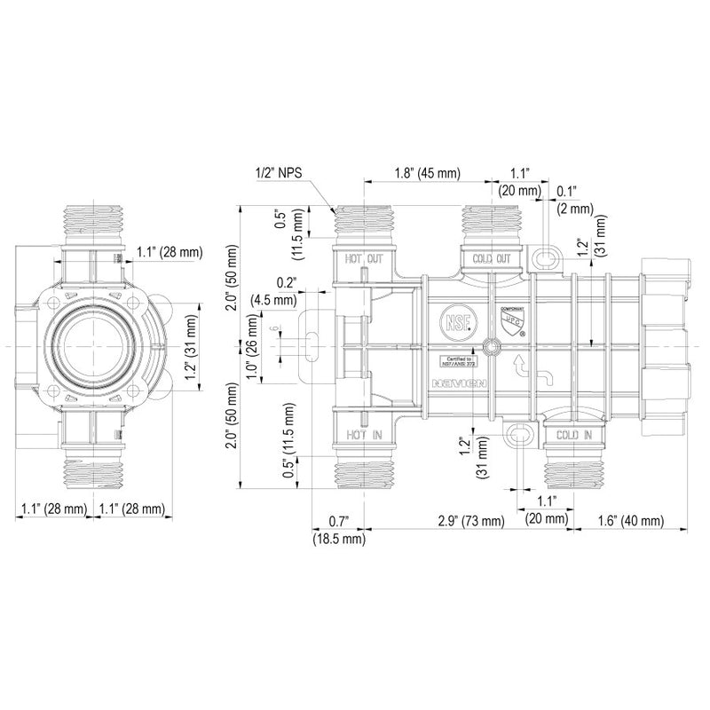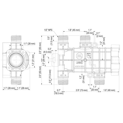 - Automatically blocks circulation when the hot water temperature within the valve is about 95 degrees F (35 degrees C)