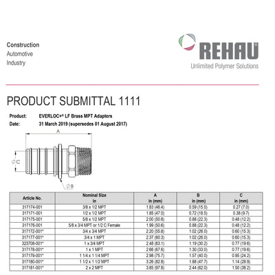 Rehau 317174-001 - 3/8" x 1/2" MPT EVERLOC+ LF Brass Adapter