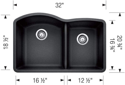 32" Diamond Bowl Undermount Kitchen Sink - Anthracite