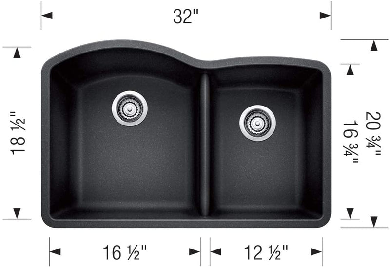- Double basin sink with a 60/40 split provides increased versatility for any task