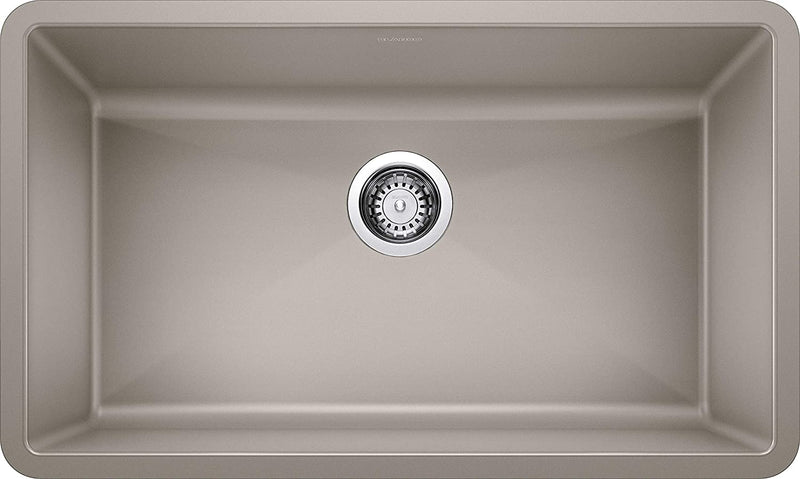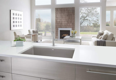 The BLANCO PRECIS SUPER SINGLE KITCHEN SINK is inspired by professional kitchen sinks in both form and functionality. With crisp angular shaping and simple but spacious design, this kitchen sink easily conquers the demands of everyday life. Made from the rock hard, durable SILGRANIT patented surface, it's no wonder this hardworking granite composite sink collection is one of our most popular. Beautiful and highly functional, the PRECIS kitchen sink features a smooth surface that is resistant to chips, scratches and heats up to 536°F. Even a fork or the bottom of a hot pan can't damage BLANCO SILGRANIT sinks. The colorful, non-porous surface also makes the bowl resistant from all stains, household acids and alkali solutions as well as easy-to-clean. For three generations, BLANCO has quietly and passionately elevated the standards for luxury sinks, faucets, and decorative accessories. A family-owned company, BLANCO was founded over 85 years ago in Germany, and recently celebrated a milestone of 25 years in the United States where we are recognized as a leader in quality, innovation, and unsurpassed service.