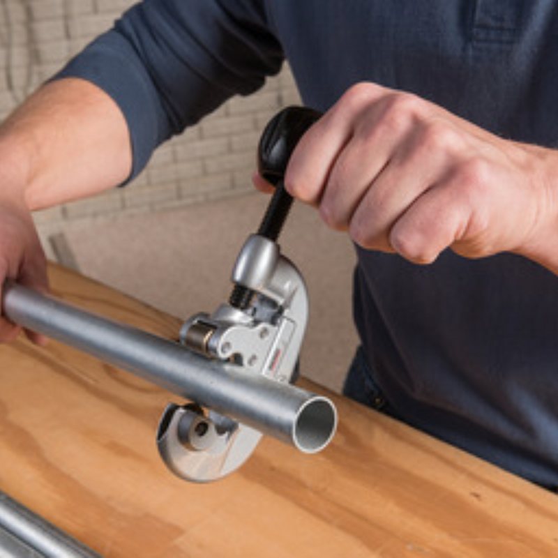 RIDGID's Screw Feed Tubing Cutters make clean square cuts on copper, brass, aluminum and thin-wall steel. X-CEL Knob cuts tubing more quickly and easily with a larger, more ergonomic designs.