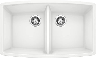 33" Performa Equal Double Bowl Undermount Kitchen Sink- White