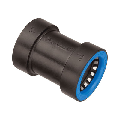 The 1" Blu-Lock 3x Coupling provides a fast, secure connection for Blu-Lock irrigation systems without the need for clamps, glue, or tools. Designed for use with 1" Blu-Lock tubing, this push-to-connect coupling allows installers to quickly join sections of pipe for efficient water delivery in professional and residential irrigation applications. Its durable polymer construction resists UV exposure and harsh outdoor conditions, ensuring long-lasting performance and leak-free operation.