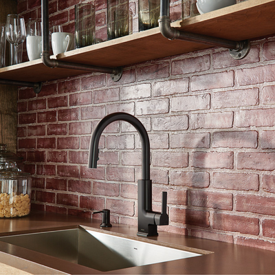 The convenient and versatile MOEN Soap/Lotion Dispenser offers a way to customize the look of your sink area with beauty and functionality. This refillable dispenser opens from the top and can hold up to 18 oz. of liquid. This soap dispenser offers a look that can complement most Bath and kitchen designs