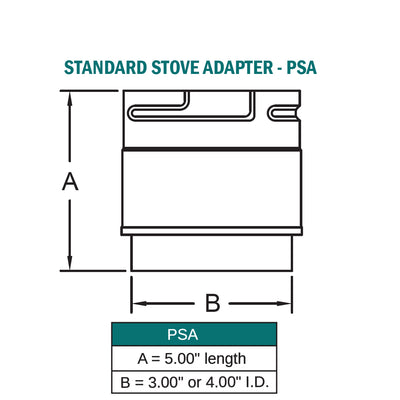 Used as a connector between stove exhaust collar and the positive twist lock of biomass chimney pipe. Order PSA when O.D. of exhaust collar is a true 3" or 4" dimension. Order PSAU when collar is less than 3" or 4" diameter. For use with biomass fuels such as pellet, corn, wheat or other grassy and woody plants as specified by appliance manufacturers.