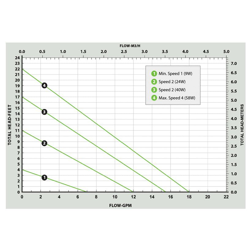 - LCD displays operating mode, temperature or speed setting, watts, GPM and supply & return temperatures