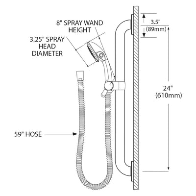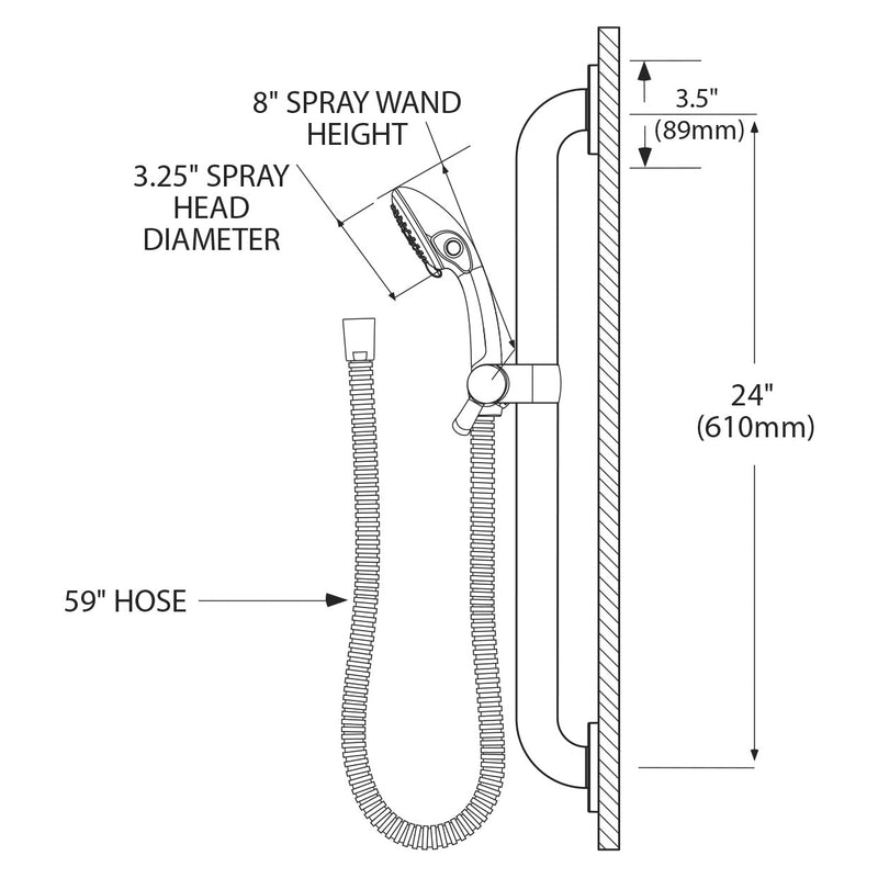 - Included slide bar makes it easy to adjust the handheld shower height