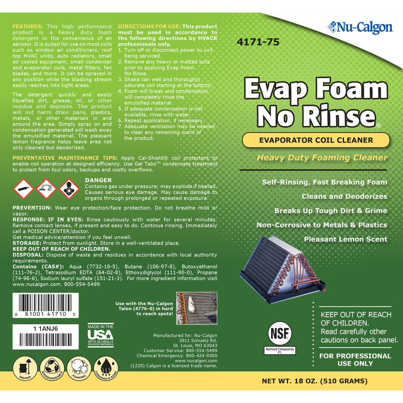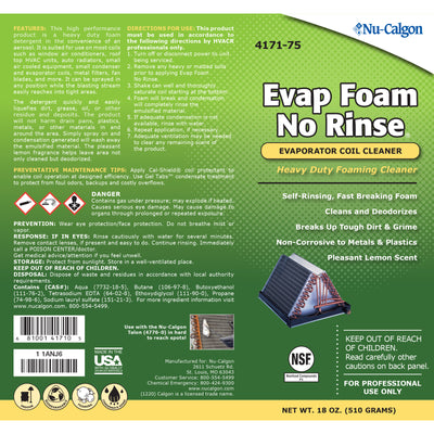 Nu-Calgon 4171-75 - Evap Foam No Rinse Evaporator Coil Cleaner - 18 oz