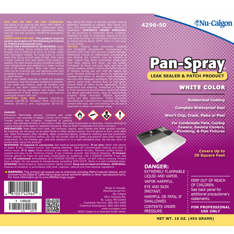 Nu-Calgon 4296-50 - Pan-Spray Leak Sealer & Patch Product - 16 oz - White