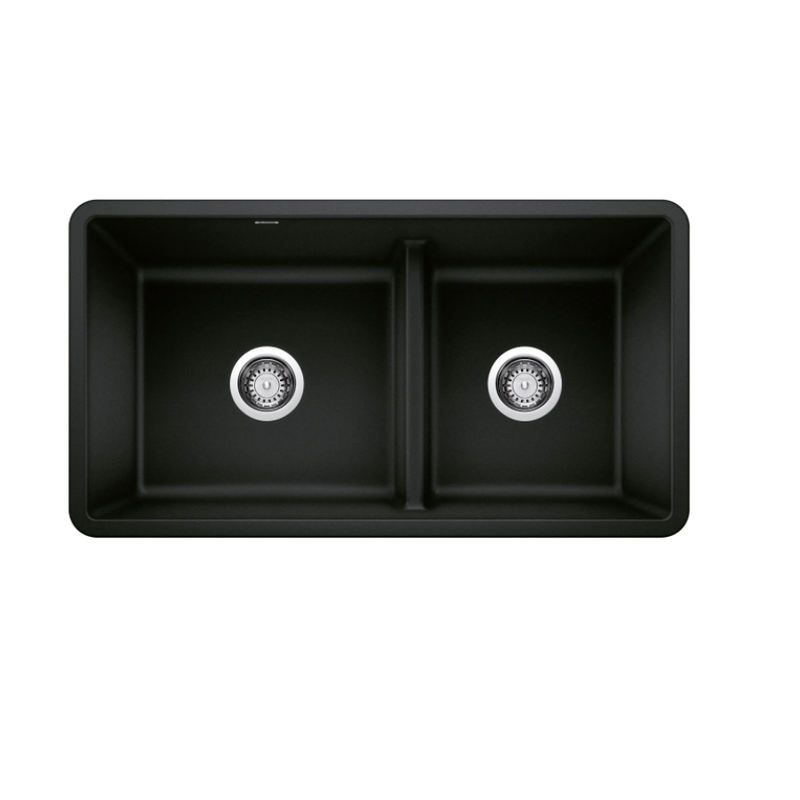 442925 - Precis SILGRANIT 33" 60/40 Reversible Double Bowl Undermount Kitchen Sink with Low Divide - Coal Black