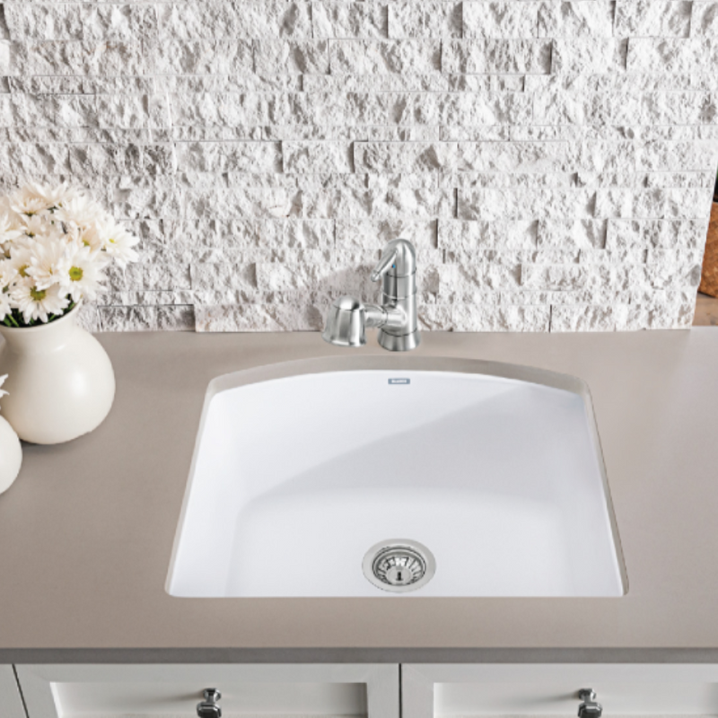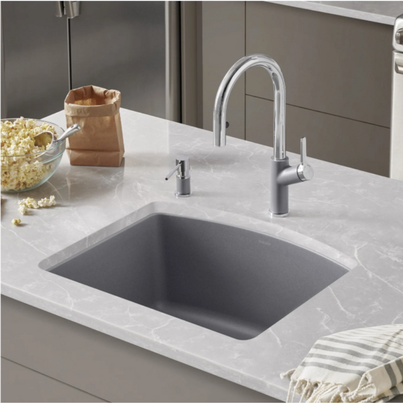 The DIAMOND 24" Single Bowl Undermount Kitchen Sink offers a compact single bowl design, making it the perfect solution for small kitchens or additional prep zone. Made of SILGRANIT, DIAMOND kitchen sinks are engineered to withstand heavy cookware and hot bakeware. Silgranit sinks are not only strong but also beautiful, available in a range of nature-inspired colors that effortlessly complement the latest kitchen trends. Combine the DIAMOND sink with a BLANCO faucet and accessories to create a BLANCO UNIT; a seamlessly integrated kitchen solution designed to transform kitchen chores into joyful experiences. Everything you need to drink, prep and clean, all in one place.
