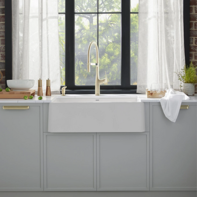 The IKON farmhouse sink is a fresh take on the classic farmhouse style. The kitchen sink’s slightly angled apron-front design adds architectural detail and comes in a range of nature-inspired colors that complement the latest kitchen trends. BLANCO’s IKON 30” sink features a spacious single bowl for easy washing of large pots and pans. Made of BLANCO’s patented SILGRANIT composite material, IKON sinks are engineered to withstand heavy cookware and hot bakeware. Combine the IKON 30” sink with a BLANCO faucet and accessories to create a BLANCO UNIT; a seamless, fully integrated kitchen solution designed to transform kitchen chores into joyful experiences.