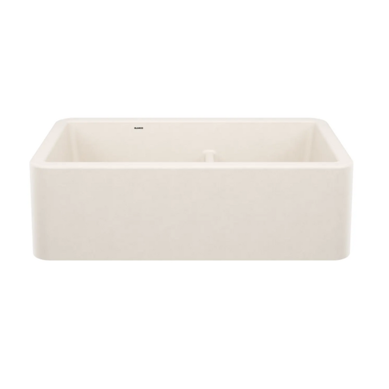 The IKON farmhouse sink is a fresh take on the classic farmhouse style. The kitchen sink’s slightly angled apron-front design adds architectural detail and comes in a range of nature-inspired colors that complement the latest kitchen trends. The IKON 33 1¾ Low Divide features a convenient low divide which sits just 5-1/2" from the sink bottom, making it easier to handle large pots and baking sheets while dividing the sink into cleaning and prepping zones. Made of BLANCO’s patented SILGRANIT composite material, IKON sinks are engineered to withstand heavy cookware and hot bakeware. Combine the IKON 33" double bowl sink with a BLANCO faucet and accessories to create a BLANCO UNIT; a seamless, fully integrated kitchen solution designed to transform kitchen chores into joyful experiences.