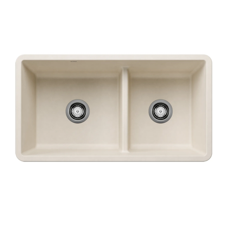 443080 - Precis SILGRANIT 33" 60/40 Reversible Double Bowl Undermount Kitchen Sink with Low Divide - Soft White