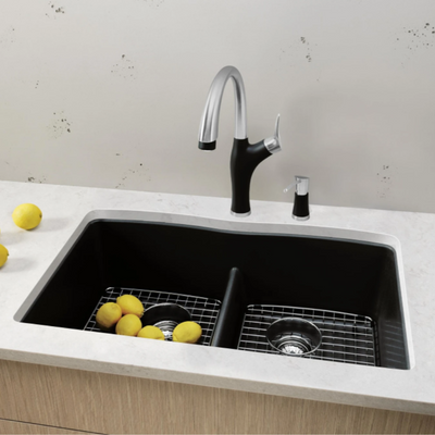 The DIAMOND DOUBLE BOWL UNDERMOUNT KITCHEN SINK with LOW DIVIDE features a 50/50 bowl design with low divide, offering plenty of room for rinsing, washing, soaking, spraying and straining operations. The convenient low divide sits just 5-1/2" from the sink bottom, making it easier to handle large pots and baking sheets while dividing the sink into cleaning and prepping bowls. Made of SILGRANIT, DIAMOND kitchen sinks are engineered to withstand heavy cookware and hot bakeware. Silgranit sinks are not only strong but also beautiful, available in a range of nature-inspired colors that effortlessly complement the latest kitchen trends. Combine the DIAMOND sink with a BLANCO faucet and accessories to create a BLANCO UNIT; a seamlessly integrated kitchen solution designed to transform kitchen chores into joyful experiences. Everything you need to drink, prep and clean, all in one place.